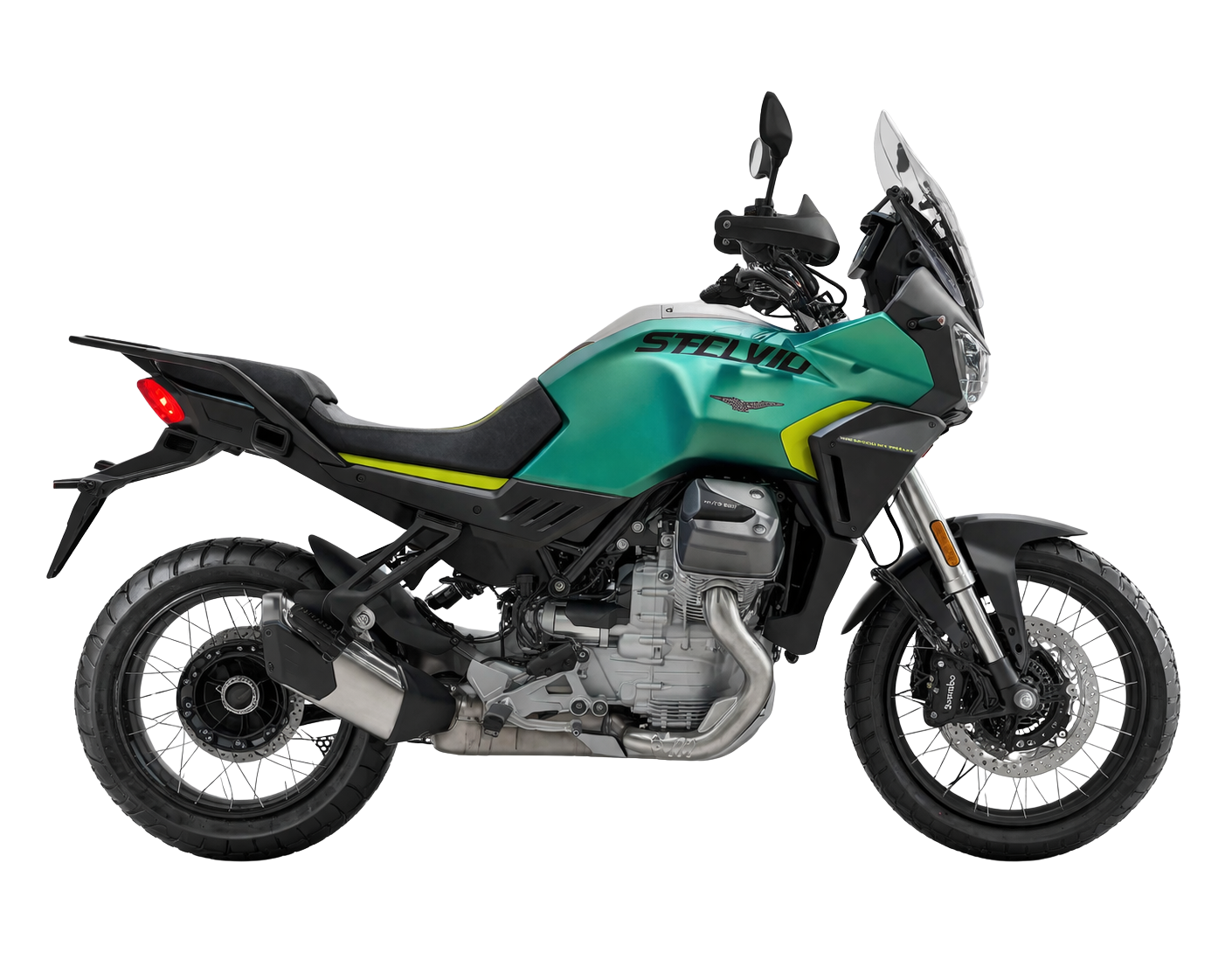 The Stelvio features five customizable riding modes. In addition to the four riding modes of the V100 Mandello (Turismo, Pioggia, Strada, Sport), the Off-Road riding mode was developed specifically for the Stelvio to tackle the most adventurous routes. Each riding mode intervenes on the key parameters of the bike: power delivery, engine brake, traction control and ABS. With the Off-road mode only, ABS can be switched-off.
