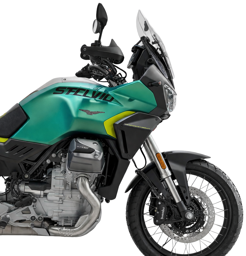 The Stelvio was Moto Guzzi’s historic entry into the adventure bike market, designed for versatility, able to handle a variety of terrain, from paved roads to dirt trails, and long-distance touring.