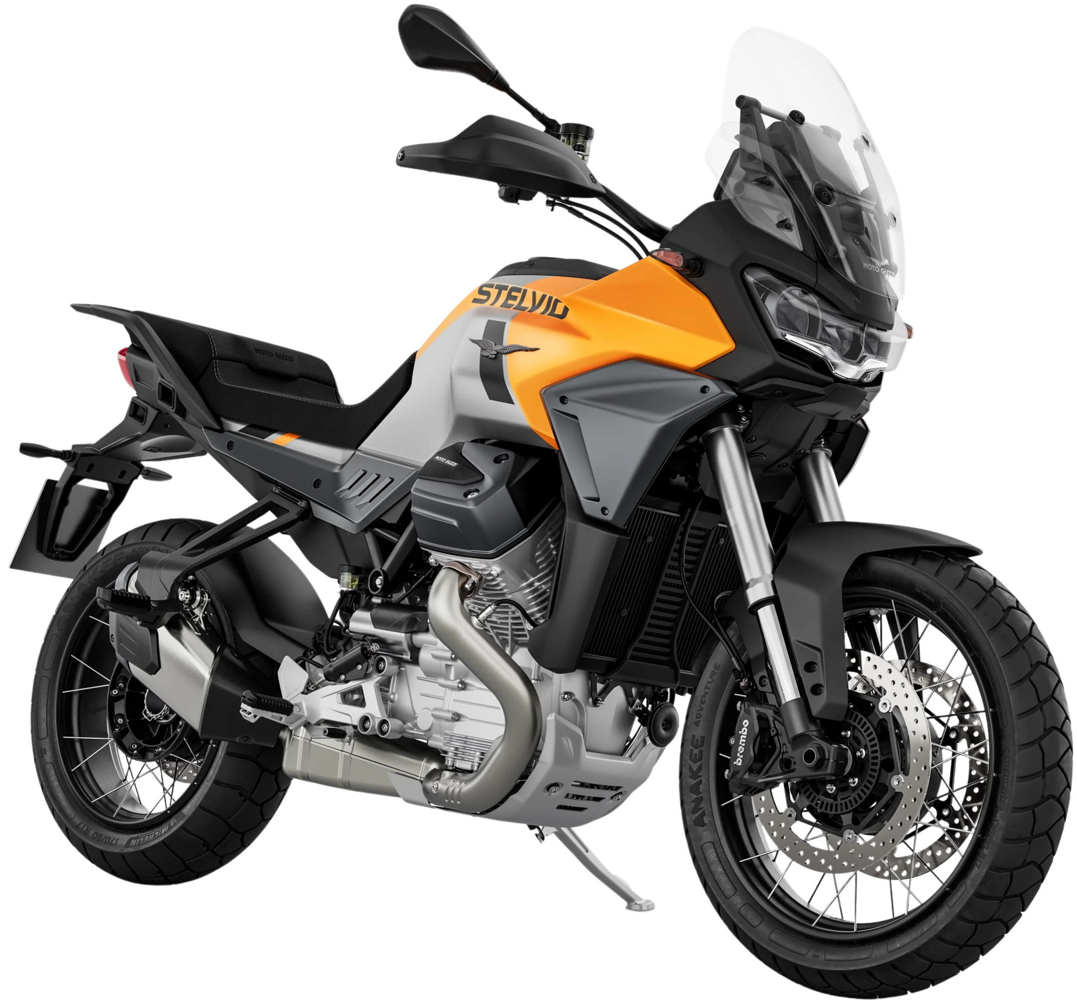 Stelvio was designed to allow you to make the most of every ride and expand your horizons without boundaries, thanks to its 5.6 gallon tank with a range of over 248 miles. At its core is the tubular steel frame that facilitates handling of the motorbike, obtaining the optimal compromise between agility and stability.