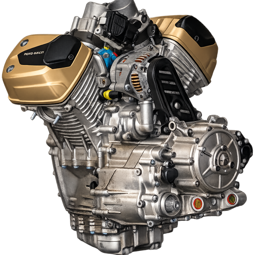 The first Moto Guzzi platform to be powered by the new compact block engine which respects the traditional 90° transverse V architecture with a shaft drive, but is liquid-cooled. The 1042-cc engine is a lightweight and compact thing of beauty, coming in at 103 mm shorter than the V85 TT small block and delivering 115 horsepower and 77.4 ft-lb of torque at 6750 rpm. It comes with a wet sump lubrication system and hydraulically-controlled wet clutch.
